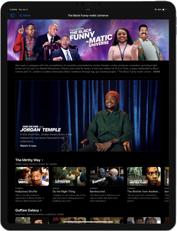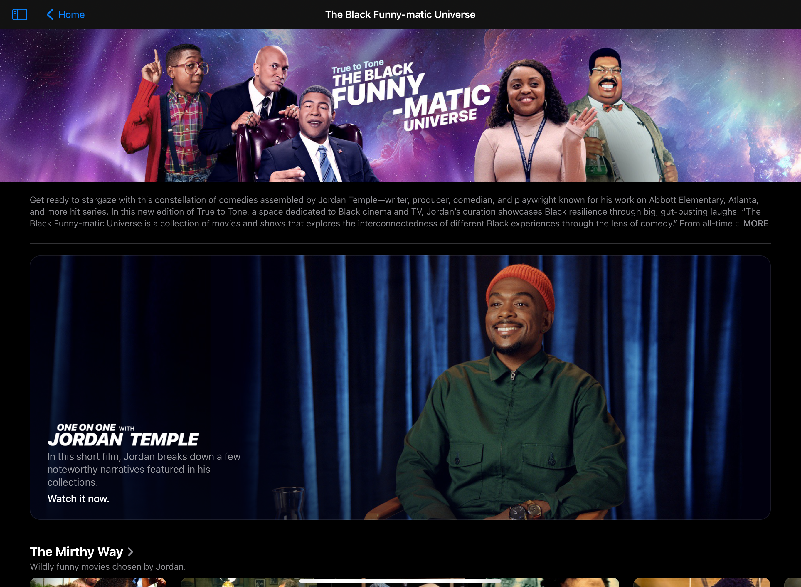 Each collection featured in this series is curated by a different Black creator and centered around a specific theme they have chosen. The featured creator was the writer, comedian, and executive producer for Abbott Elementary, Jordan Temple, with his theme of "The Black Funny-matic Universe."