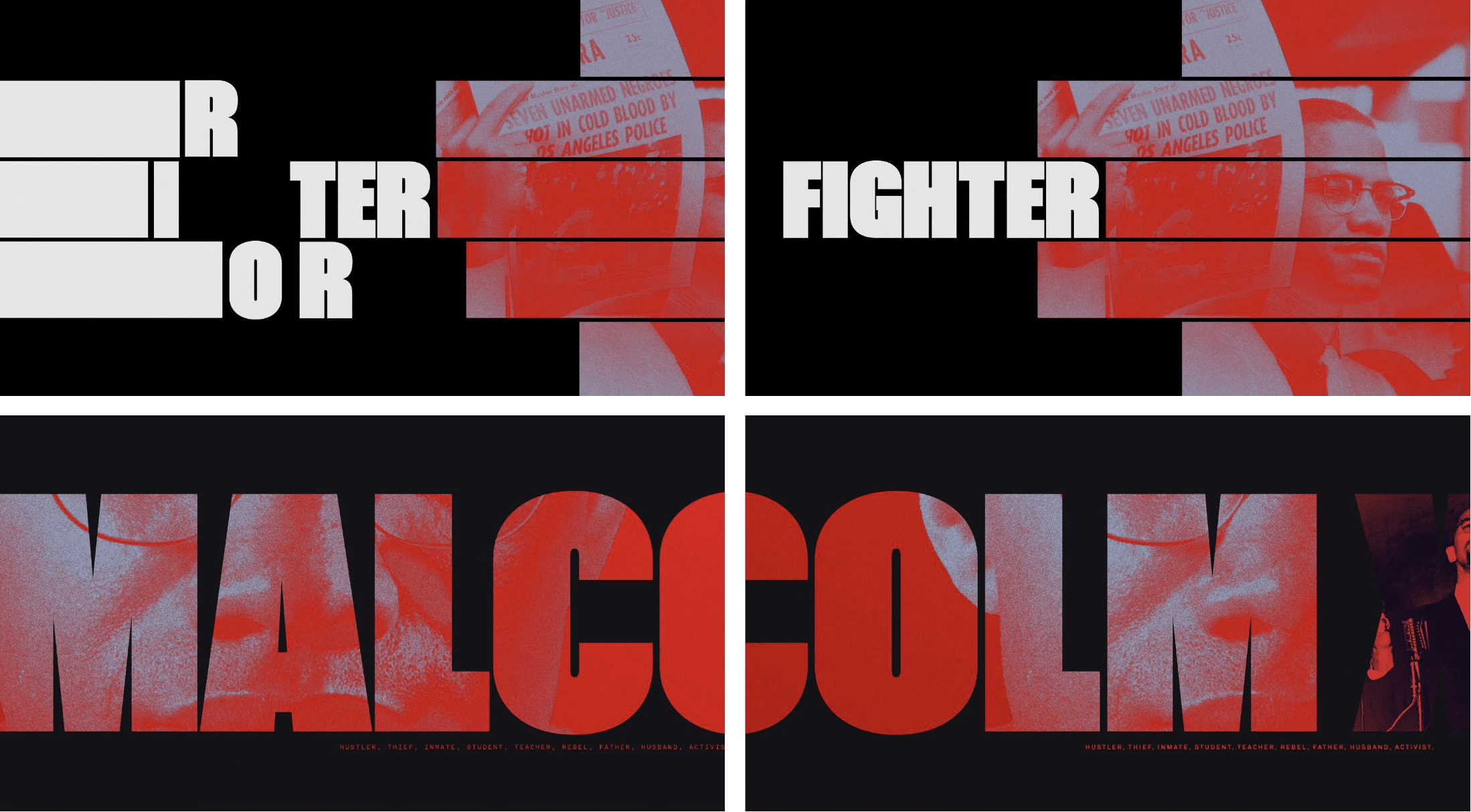 In this spot, we will cycle through a collage of rarely seen images of Malcolm at different stages of his life, from street hustler to civil rights activist. With each transition text will appear over each image labeling who Malcolm was at that time, such as “Brother, fighter, survivor, teacher, rebel, father, husband, activist, American, etc.” Each transition will be cut in sync with dynamic music designed to build tension.